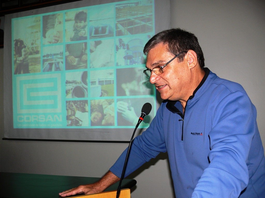 [caption id="attachment_1794" align="alignleft" width="368"]Inicialmente o representante da CORSAN, José Homero, fez uma explanação de todos os investimentos feitos pela Companhia nos últimos anos, bem como as obras que estão em andamento e as que estão previstas, ultrapassando R$10 milhões, obras estas imprescindíveis para a regulação do abastecimento e a resolução dos problemas relativos à distribuição de água.