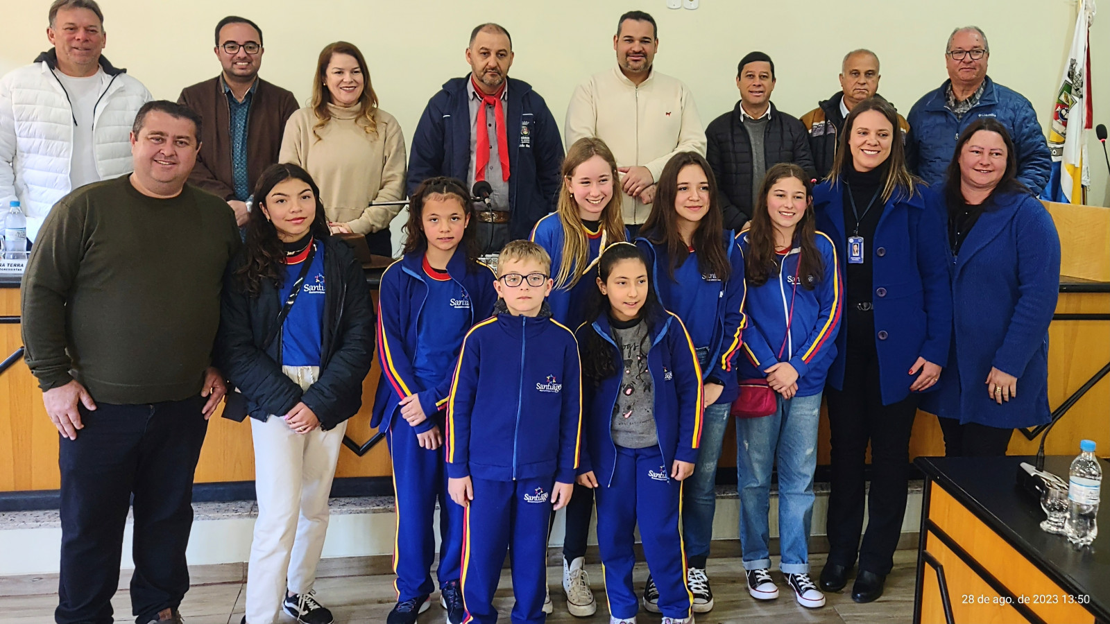 Na tarde desta segunda feira, dia 28 de agosto de 2023, o Presidente da Câmara Municipal de Vereadores, o Sr. João Alberto, e demais Parlamentares, fizeram entrega de Menção Honrosa proposta pelo Vereador Magdiel Lamberti Bissaco, a ESCOLA MUNICIPAL SILVIO AQUINO, pelos 82 anos de fundação no nosso Município, prestando um relevante trabalho educacional e disciplinar aos alunos.