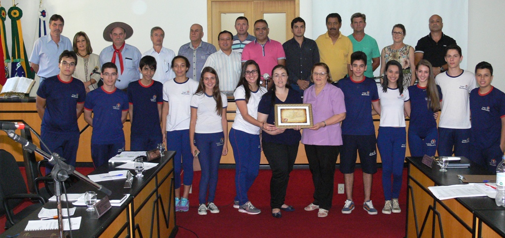Alunos do educandário compareceram no plenário junto com a direção, prestigiando a homenagem.