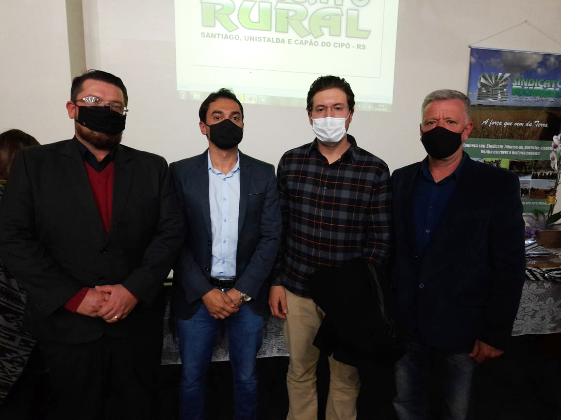 A Câmara de Vereadores, através do vice-presidente Décio Loureiro, esteve presente na cerimônia de posse da nova diretoria do Sindicato Rural de Santiago, Unistalda e Capão do Cipó, realizada na quinta-feira, 13 de maio.