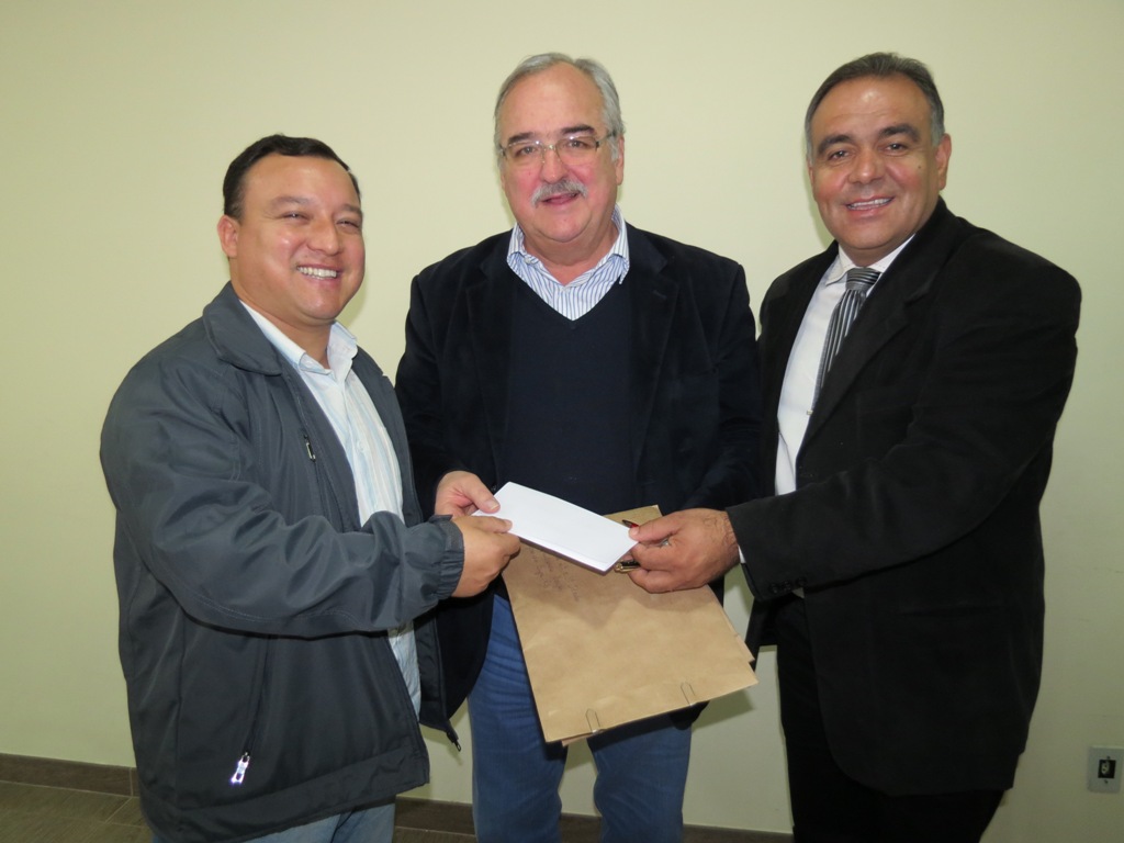 [caption id="attachment_1150" align="aligncenter" width="614"]O Presidente da Câmara de Vereadores, Claudio Cardoso, juntamente com o Vereador Sergio Marion, entregaram ao Secretário uma indicação em nome do Legislativo, solicitando que o DAER efetue maior fiscalização nas linhas de ônibus intermunicipais da Região, em função das inúmeras reclamações dos usuários das mesmas por constantes problemas apresentados pelos veículos que fazem o transporte.