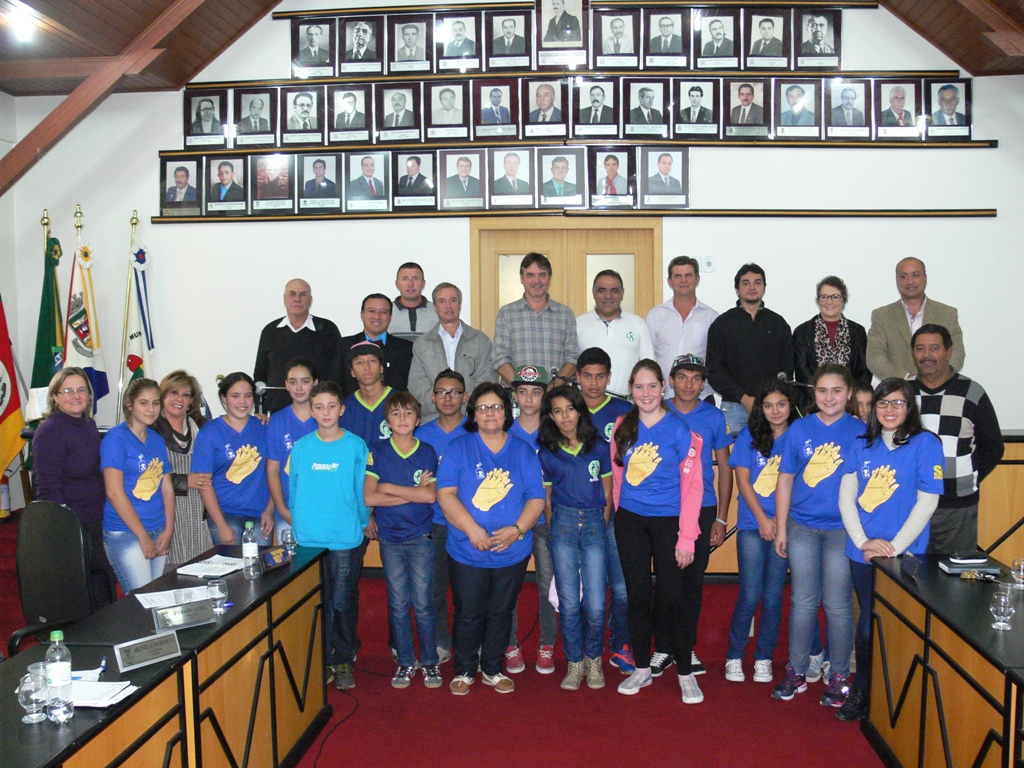 Durante a Sessão Ordinária de ontem, 04 de maio, a Câmara Municipal, através da Mesa Diretora, dando prosseguimento ao Projeto Escola no Parlamento, do Vereador e Presidente Claudio Cardoso, estiveram presentes alunos do 7º ao 9º ano da Escola Municipal Silvio Aquino, acompanhados da Diretora da Escola, Professora Vera Melo Zambeli e da Professora Maria Cristina Padilha, Coordenadora Pedagógica do Educandário.
