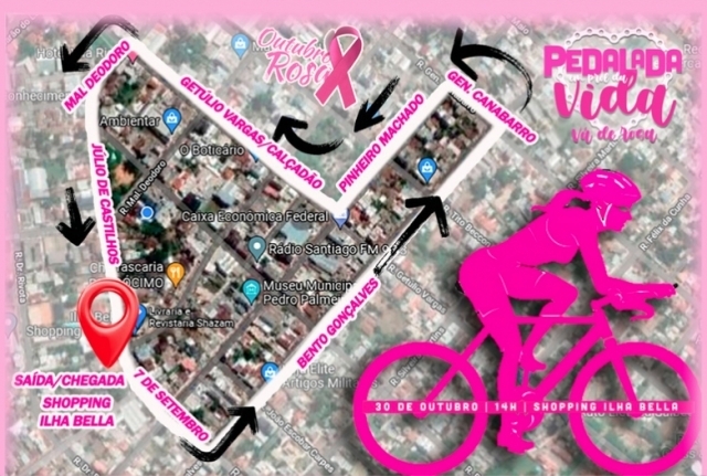 Confira o trajeto do Passeio Ciclístico em comemoração ao Outubro Rosa