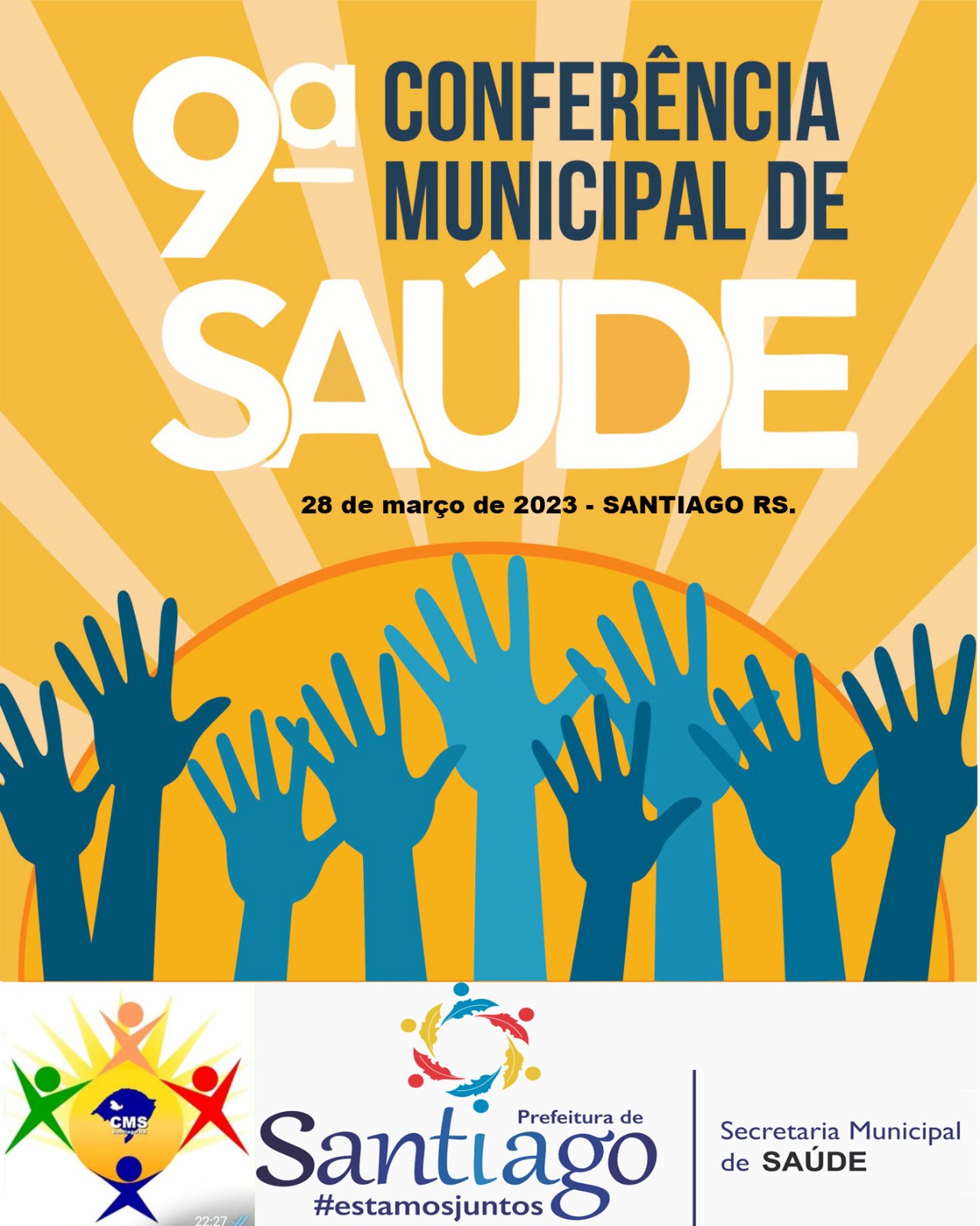 Cronograma das Pré Conferências de saúde de Santiago nos bairros e interior, abrangendo as Estratégias de Saúde da Família e adjacências, reunindo as localidades mais próximas. Realização Comissão organizadora da 9ª Conferencia Municipal de Saúde de Santiago, Conselho Municipal da Saúde e Secretaria de saúde de Santiago. Parceria Associação de moradores de bairros de Santiago.CRONOGRAMA PRÉ CONFERÊNCIA URBANAS E RURAIS