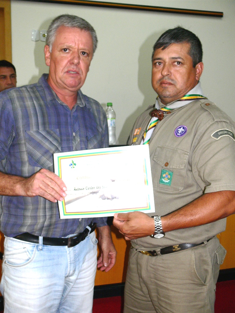 Ainda estiveram acompanhando a Sessão, os diretores presidentes dos grupos escoteiros São Tiago (Ademir Caldeira) e Toutinegra (Luis Lacerda), os quais participaram da entrega de um certificado ao Vereador Antônio Carlos, em homenagem a sua proposição de criação da Lei da Semana Municipal do Escotismo. O Vereador Antônio Carlos foi representado pelo Presidente Décio Loureiro no momento da entrega, visto que o mesmo encontra-se hospitalizado.