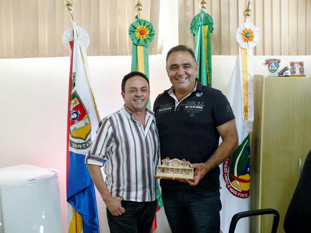O ex-vereador veio cumprimentar a nova Mesa Diretora eleita no final do ano passado, deixando uma lembrança de Santiago ao Presidente Claudio Cardoso, confeccionada pela Casa do Artesão Santiaguense.