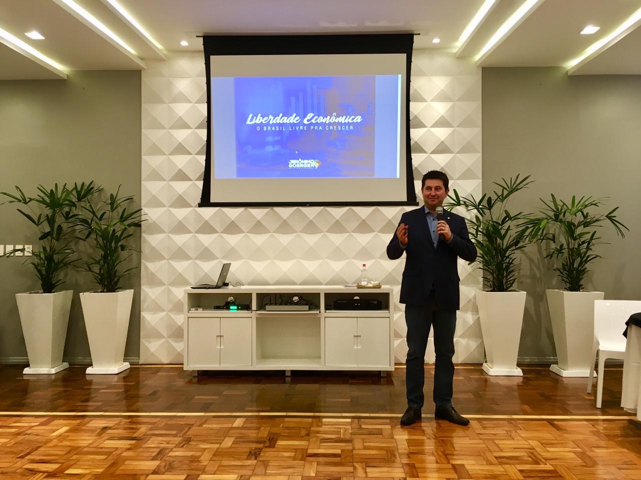 Ocorreu no dia 11 de outubro, no Centro Empresarial de Santiago o tradicional IDÉIAS NA MESA, nesta edição o convidado foi o Deputado Federal Jerônimo Goergen que falou sobre a Lei de Liberdade Econômica, pauta importante para líderes dos setores empresariais, agropecuário, político e comunicações.