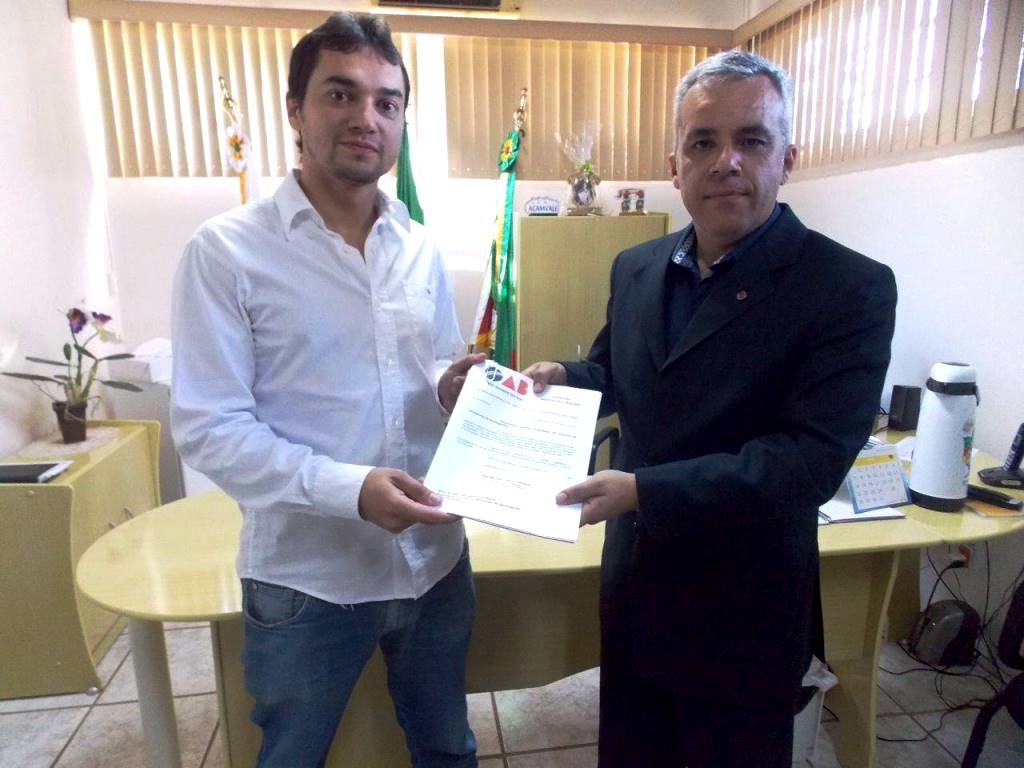 Na manhã desta sexta-feira, dia 01 de abril, o Presidente da Subseção Santiago e Jaguari, da OAB/RS (Ordem dos Advogados do Brasil), Dr. José Marcelo Lemos Palmeiro, esteve em visita à Câmara de Vereadores, no gabinete do Presidente Marcelo Gorski, entregando uma cópia do relatório elaborado pelo Conselho Federal do OAB, com fundamentação fática e jurídica do pedido de impeachment da Presidente da República, Dilma Roussef, protocolada no Congresso Nacional no último dia 28 de março.