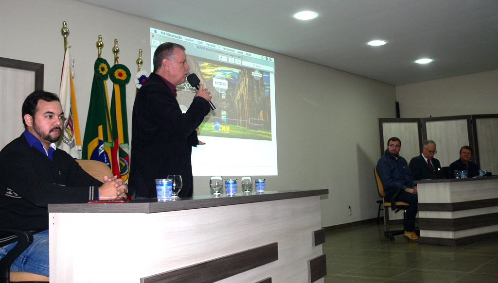 [caption id="attachment_4111" align="aligncenter" width="300"]No evento também aconteceu à apresentação do Projeto "Rota Turística Vale do Jaguari", "Mundo Gaúcho", da Famurs/CNM e a palestra "Gramado: um case de sucesso", com o ex-prefeito de Gramado Nestor Tissot. O evento foi encerrado com a palestra "Conselho Municipal do Turismo: instância de governança indispensável para o desenvolvimento local.”.