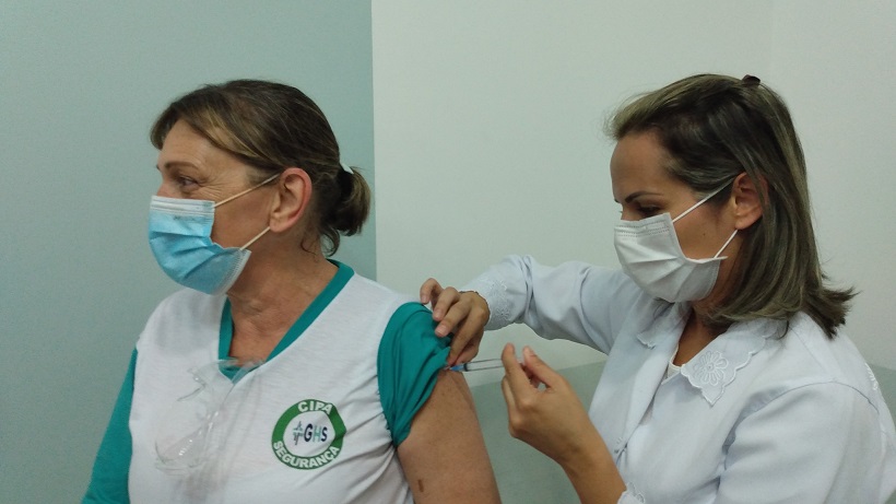 O médico Evandro Almeida e a técnica de Enfermagem Marisete Bertoncelli foram os dois primeiros santiaguenses a receber a vacina. Em seguida os profissionais dos hospitais que estão atuando no combate à pandemia também foram imunizados.