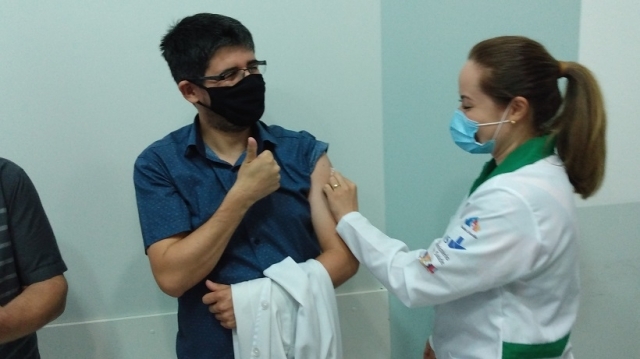Médico Evandro Almeida foi o primeiro imunizado. Fotos: Divulgação